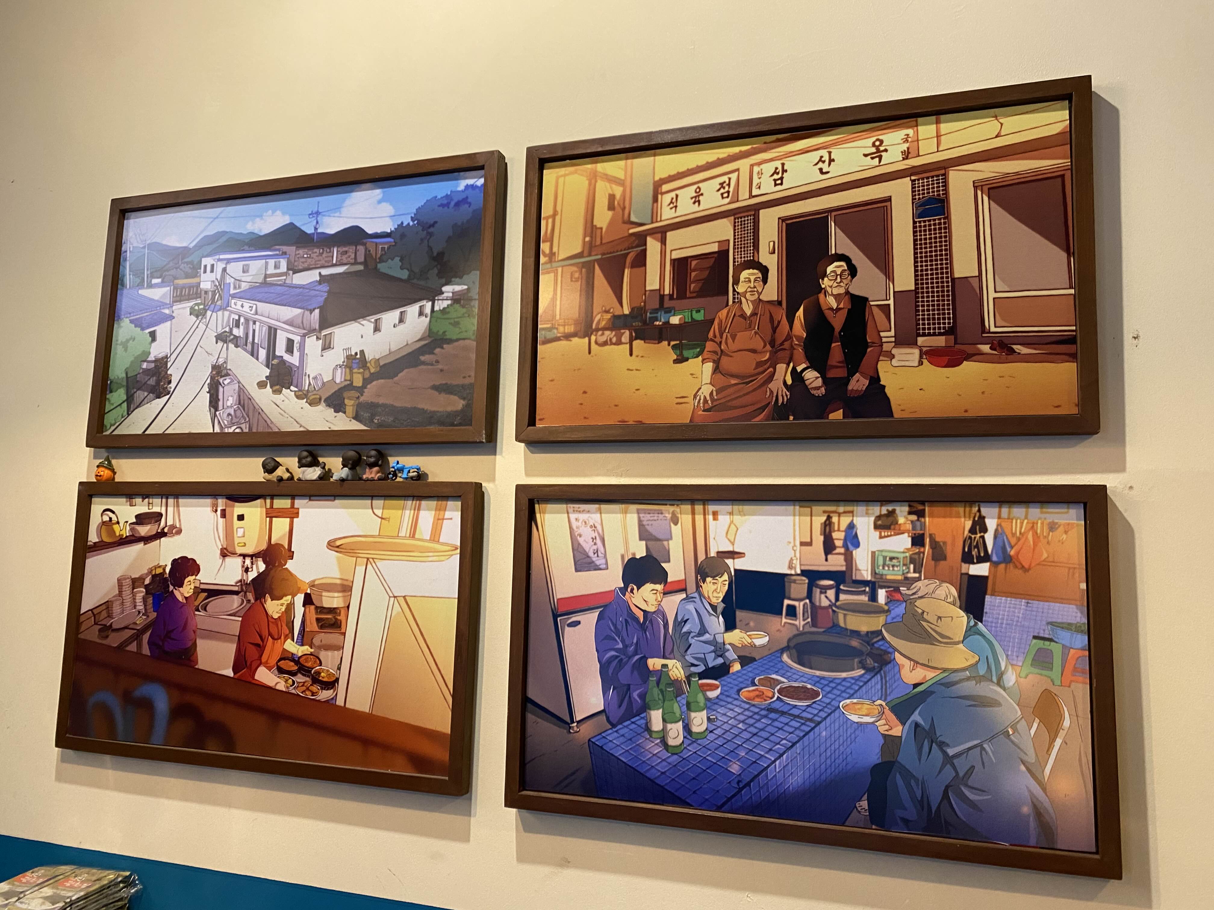 그림으로 삼산회관의 역사와 맛의 원천을 알려주는 것 같습니다.