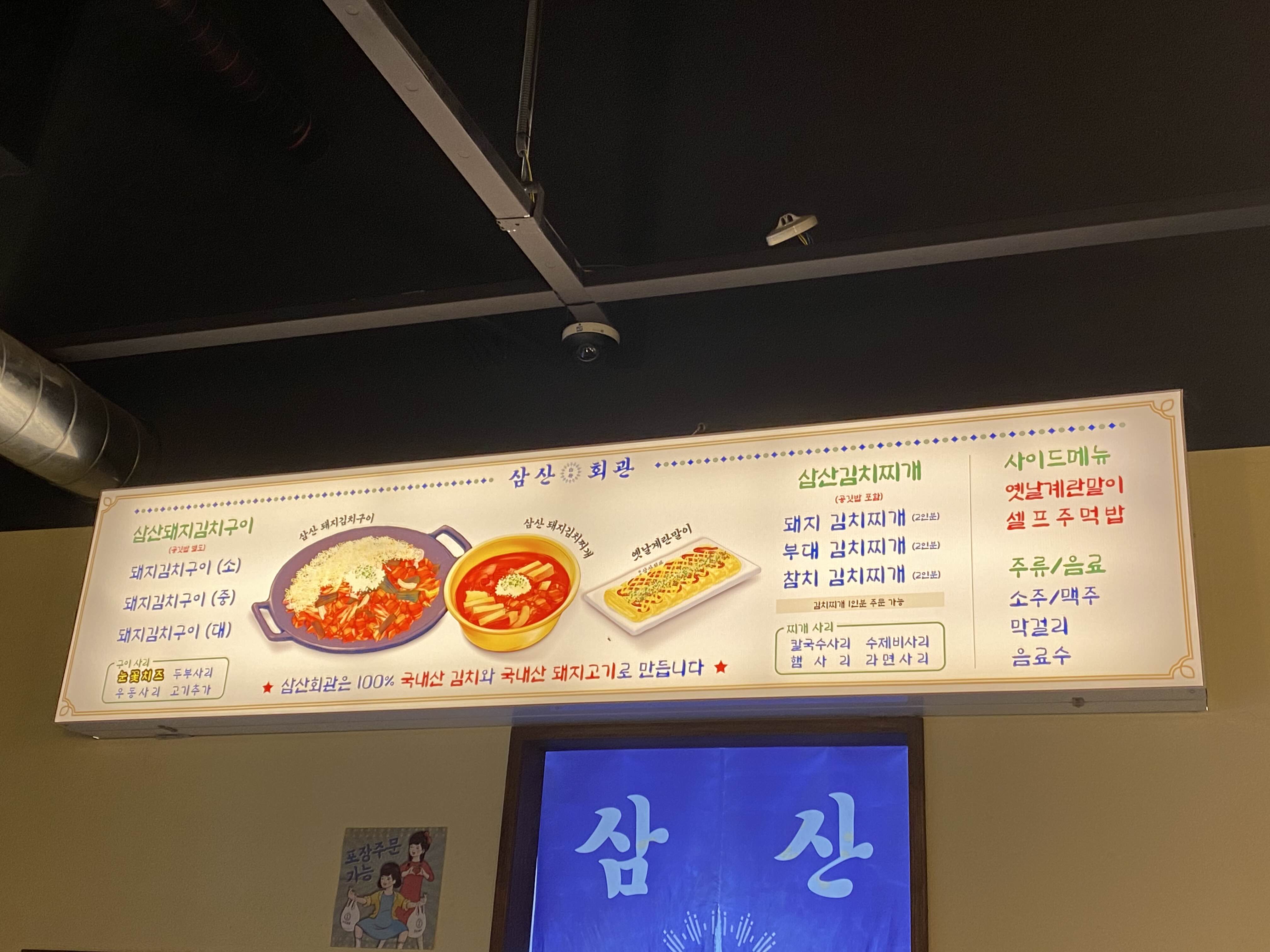 삼산회관은 숙성돼지와 할머니 손맛 김치요리가 강점입니다.