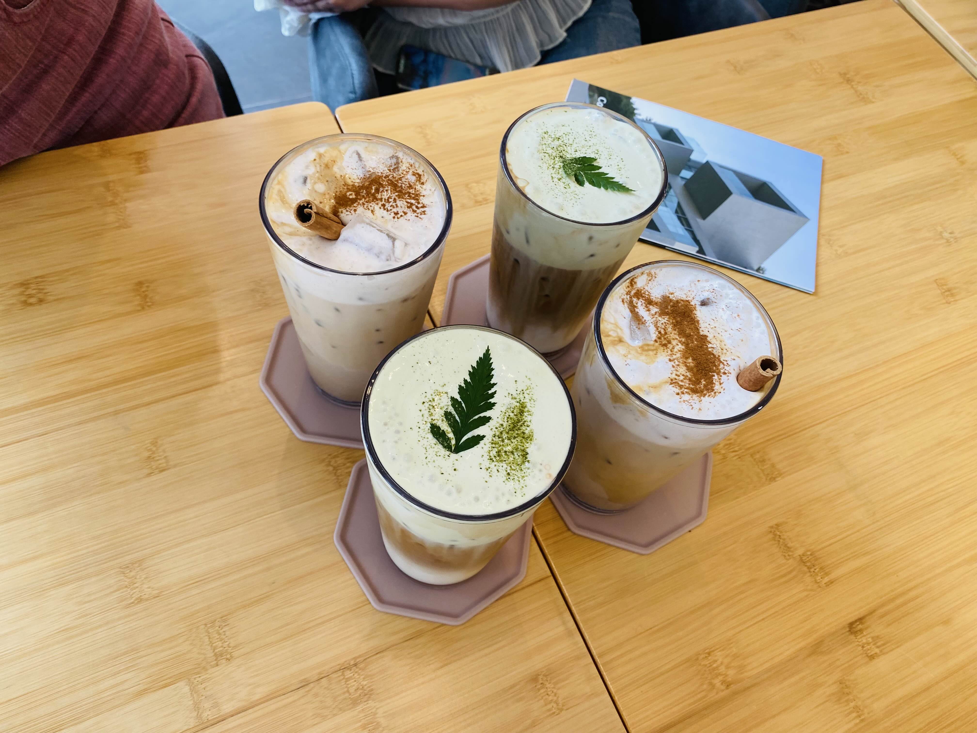 주문한 음료가 다 나왔네요, 포레슈페너 두잔과 메이플 라떼, 바닐라 라떼