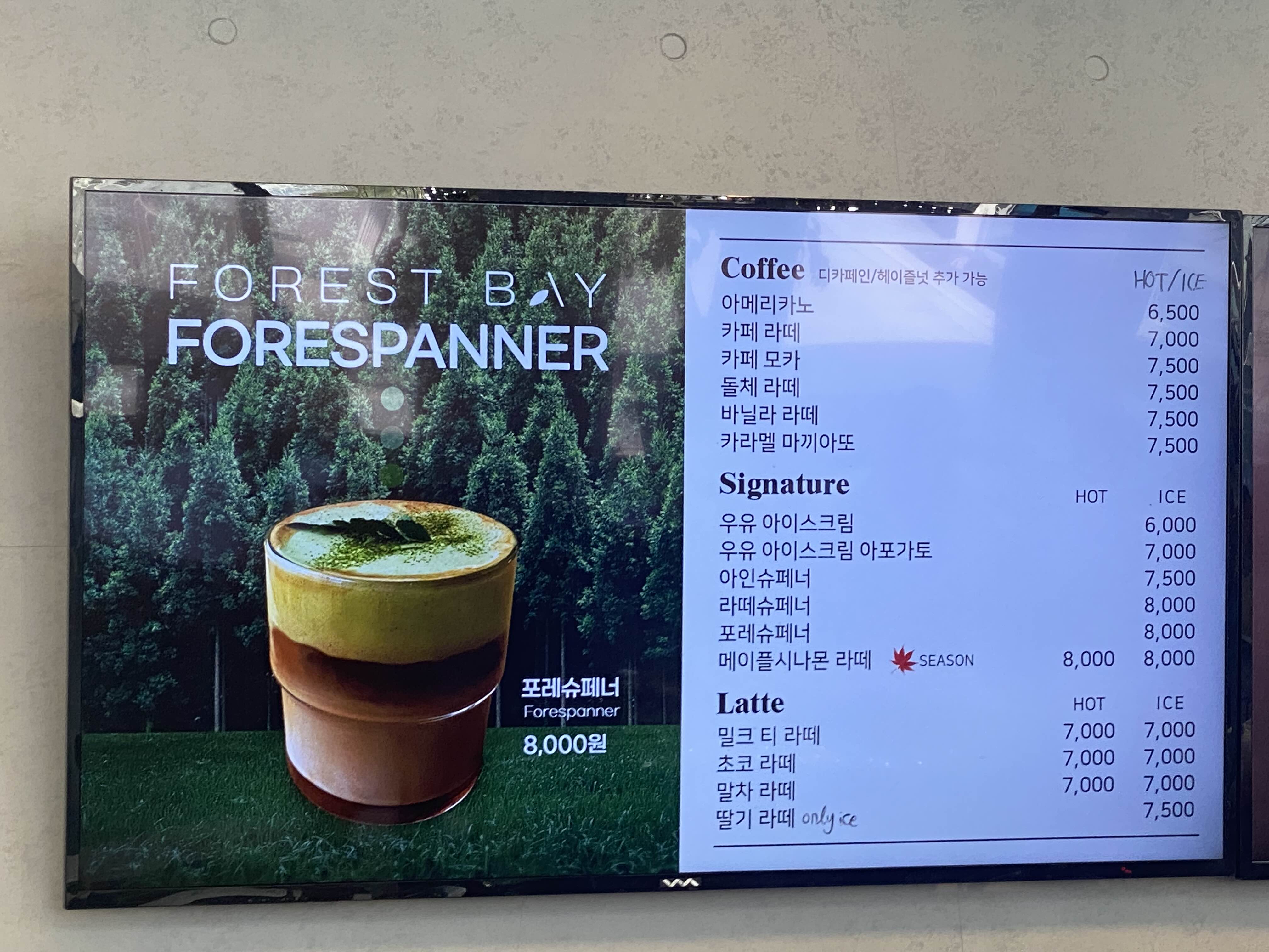 전북 대형카페 포레스트베이 메뉴판