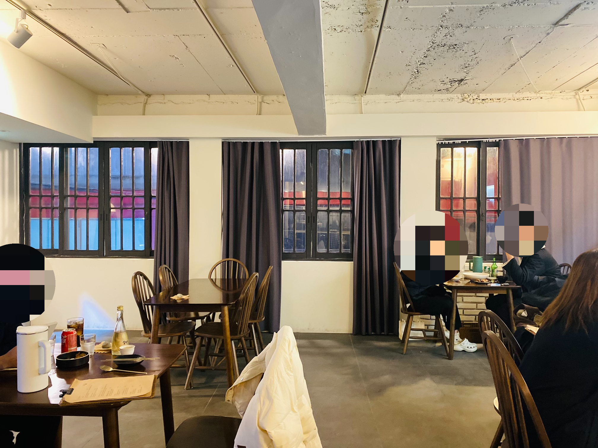 사람이 많이 없으면 테이블을 붙여서 단체도 가능할거 같은데요.