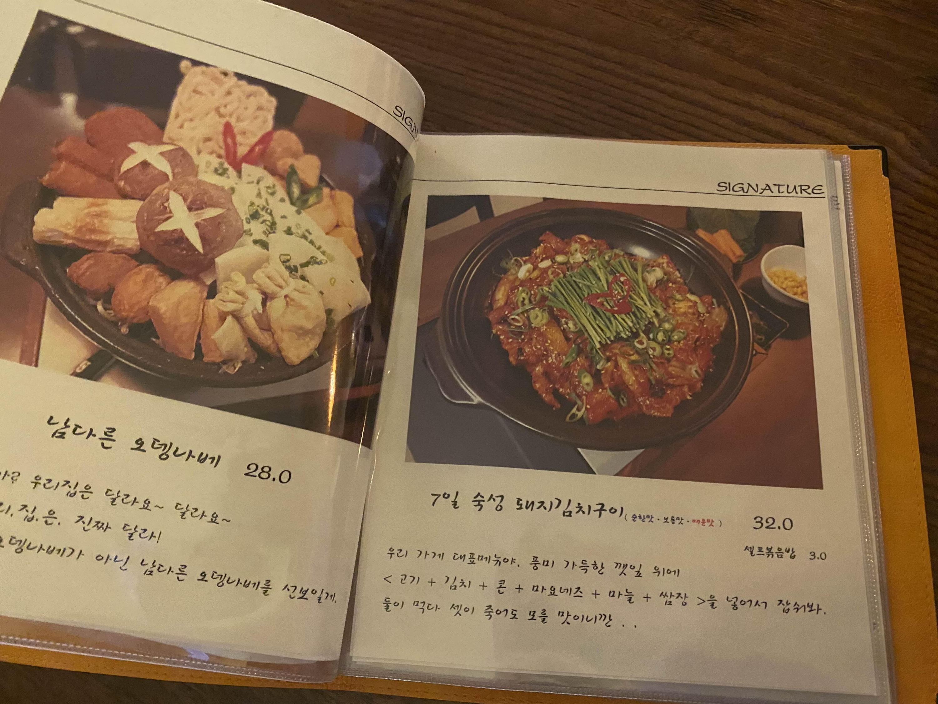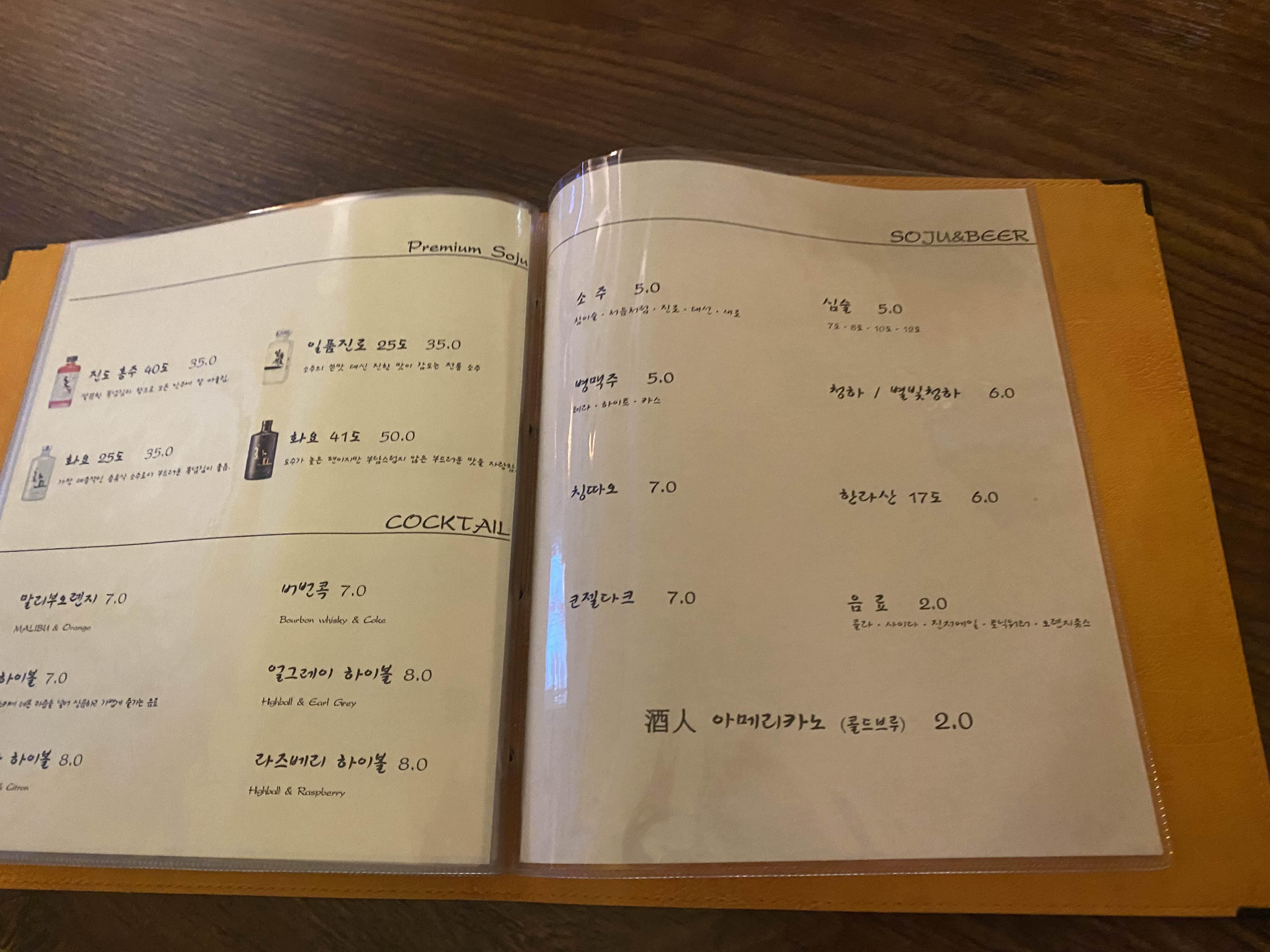 먼저 주인테이블의 메뉴판을 열어봤는데, 주인테이블이 가지고 있는 철학에 대한 시가 적혀있었습니다.